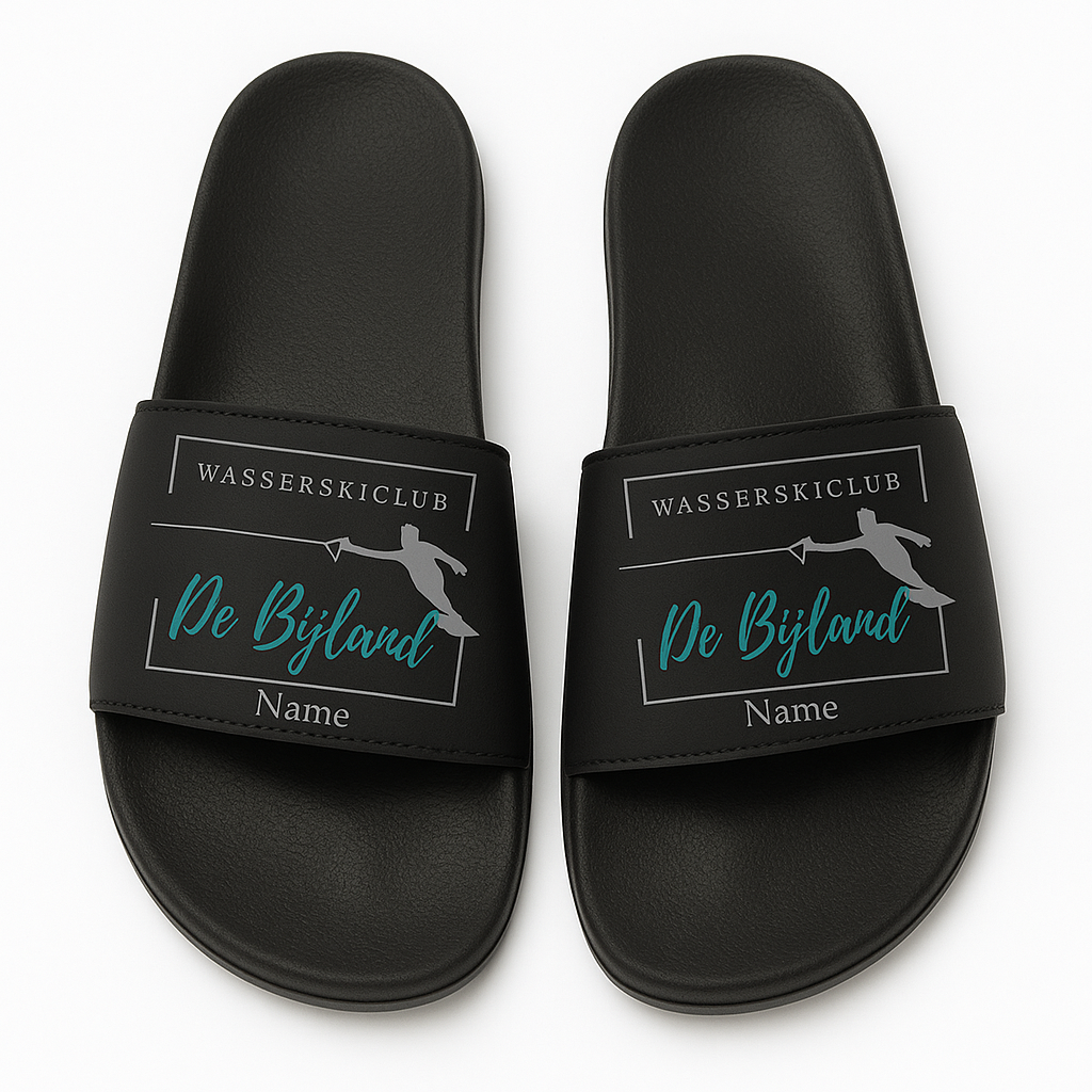 Die schwarzen WSC-Badelatschen mit unserem WSC-Logo und Deinem individuellen Namen.
